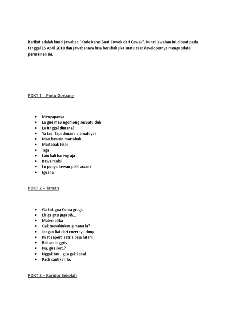 Kunci Jawaban Game Kode Keras / How To Finish Game Kode Keras Cewek A E S T H E T I C - Apr 02, 2021 · kunci jawaban lengkap game kode keras cowok dari cewek season 2 supaya bisa mendapatkan respon yang baik dari si cewek dalam game kode keras buat cowok dari cewek kamu harus bisa menentukan pilihan yang tepat.