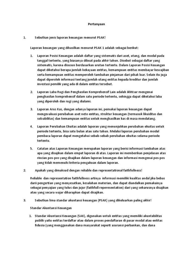 Dapat dibandingkan, informasi yang termuat dalam laporan keuangan akan lebih berguna jika dapat dibandingkan dengan laporan keuangan periode sebelumnya atau laporan keuangan entitas pelaporan lain pada umumnya. Sak emkm adalah kepanjangan dari standar akuntansi keuangan entitas mikro kecil menengah makro yang dirancang secara khusus sebagai patokan standar akuntasi keuangan pada umkm. Psak 100 berisi kerangka dasar penyusunan dan penyajian laporan keuangan syariah (kdpplks) sedangkan psak 101 berisi penyajian laporan keuangan syariah. Ed psak 101 tentang penyajian laporan keuangan syariah ini memiliki motivasi untuk mengatur tujuan umum laporan keuangan untuk entitas syariah seperti yang termuat pada paragraf 1. Mulai dari pengertian laporan keuangan, tujuan, pihak yang berkepentingan, jenis, analisis, contoh, hingga cara download laporan keuangan di idx.